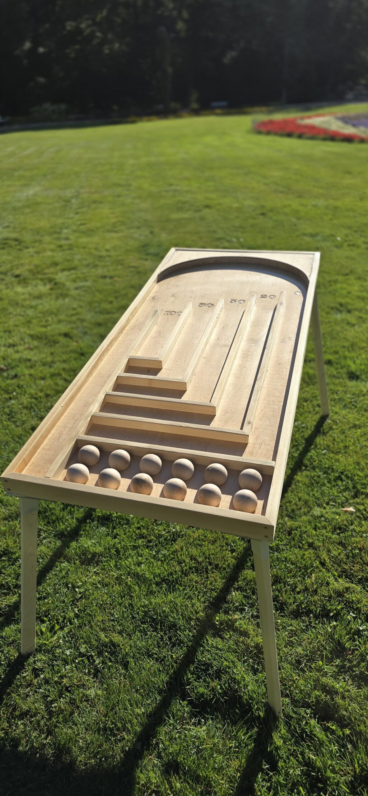 Gra polega na precyzyjnym rzucaniu drewnianych kul w kierunku przestrzeni punktowanych na lekko pochyłym stole– doskonała zabawa i rywalizacja!