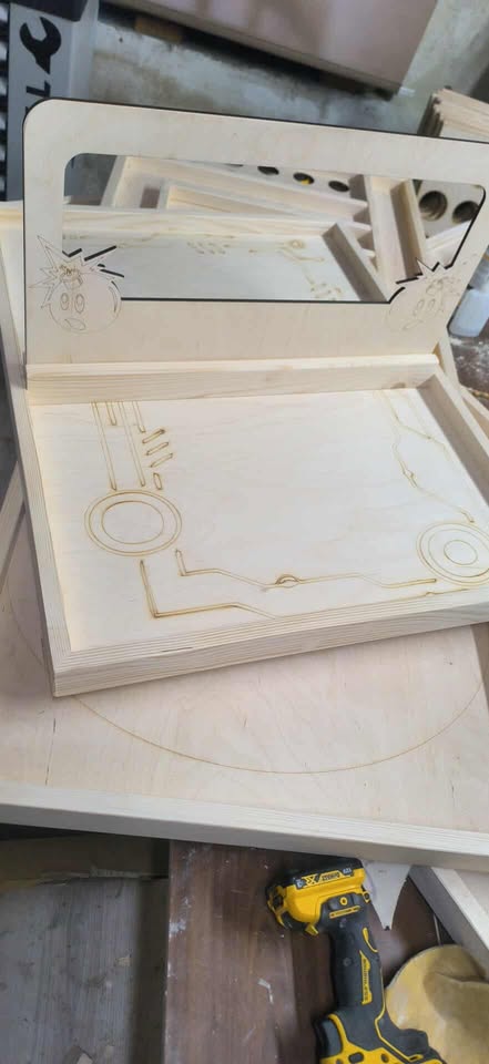 Zawartość: stolik + plansza z ramką + drewniane dyski + patyki do przerzucania